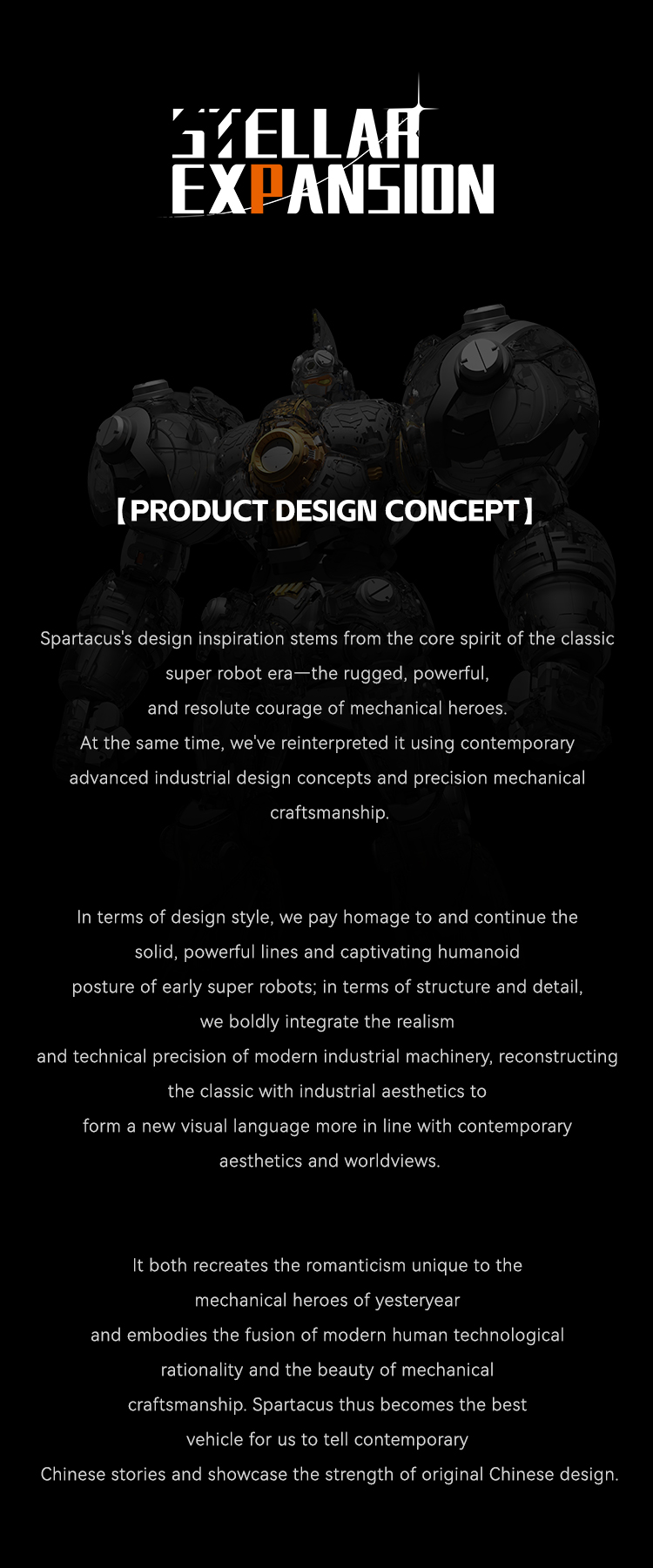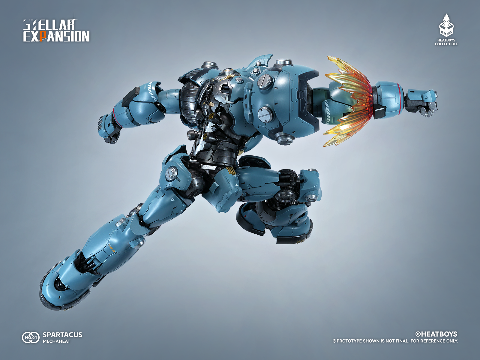 â—‡ “Stellar Expansion Spartacus” stands approximately 28cm (Head Height). Its colossal scale perfectly captures the heavy, powerful visual impact of this titan. Key load-bearing joints are constructed with Diecast Alloy and POM, granting the figure a substantial, premium weight and allowing you to experience the true immersion of a giant mecha.
